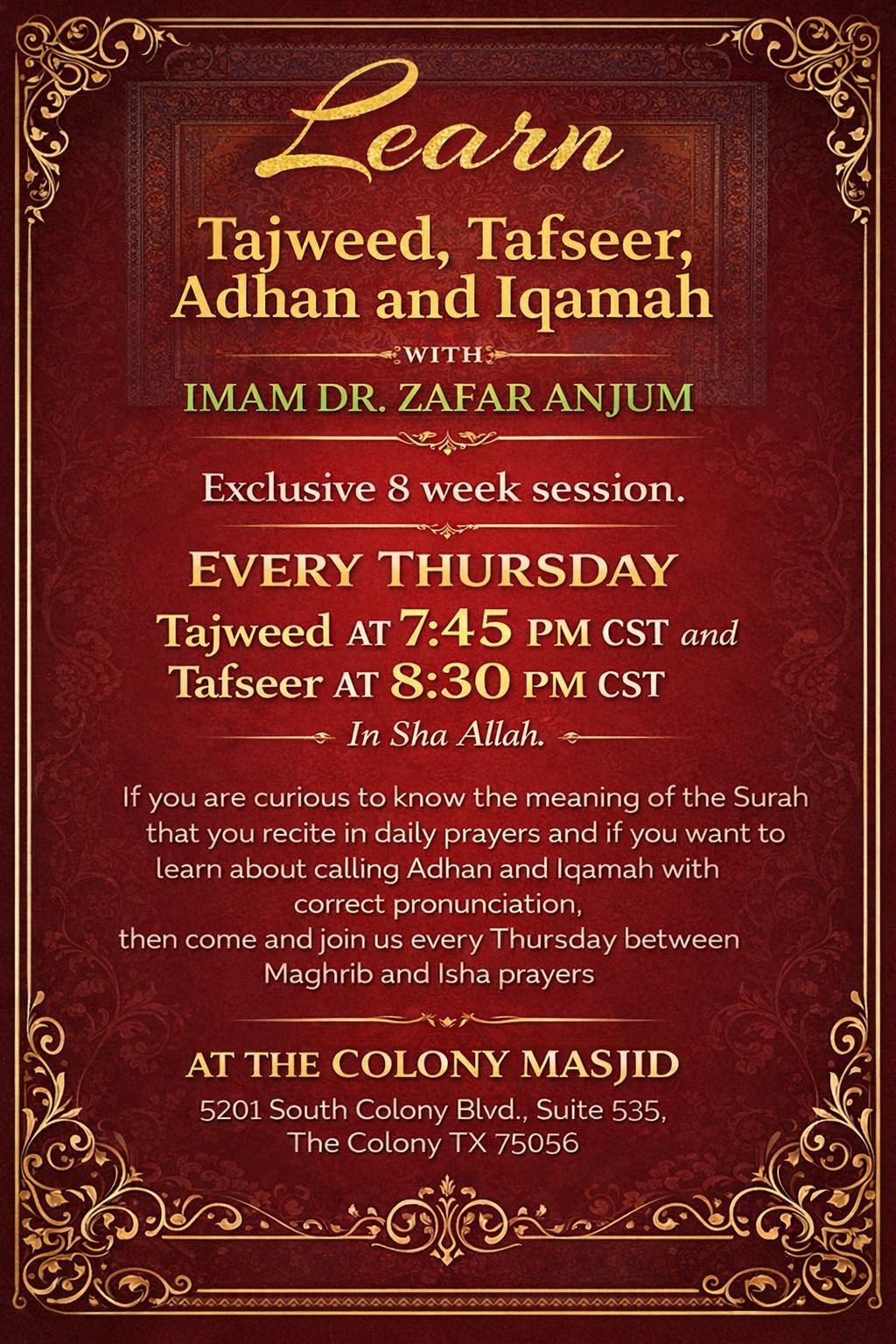 Tajweed Class (Weekly) — Imam Dr. Zafar Anjum