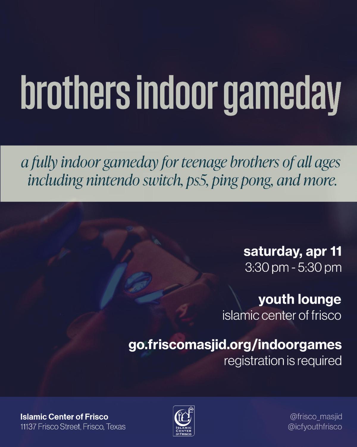 Registration required: https://go.friscomasjid.org/indoorgames
