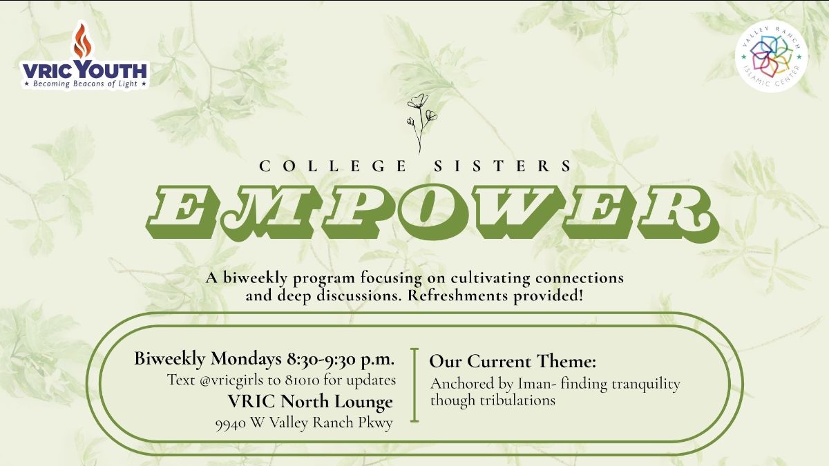 College Sisters: Empower — a biweekly program focusing on cultivating connections and deep discussions.