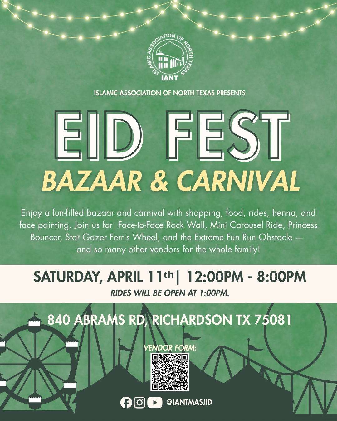 Location: IANT Masjid (Islamic Association of North Texas), 840 Abrams Rd, Richardson, TX 75081.