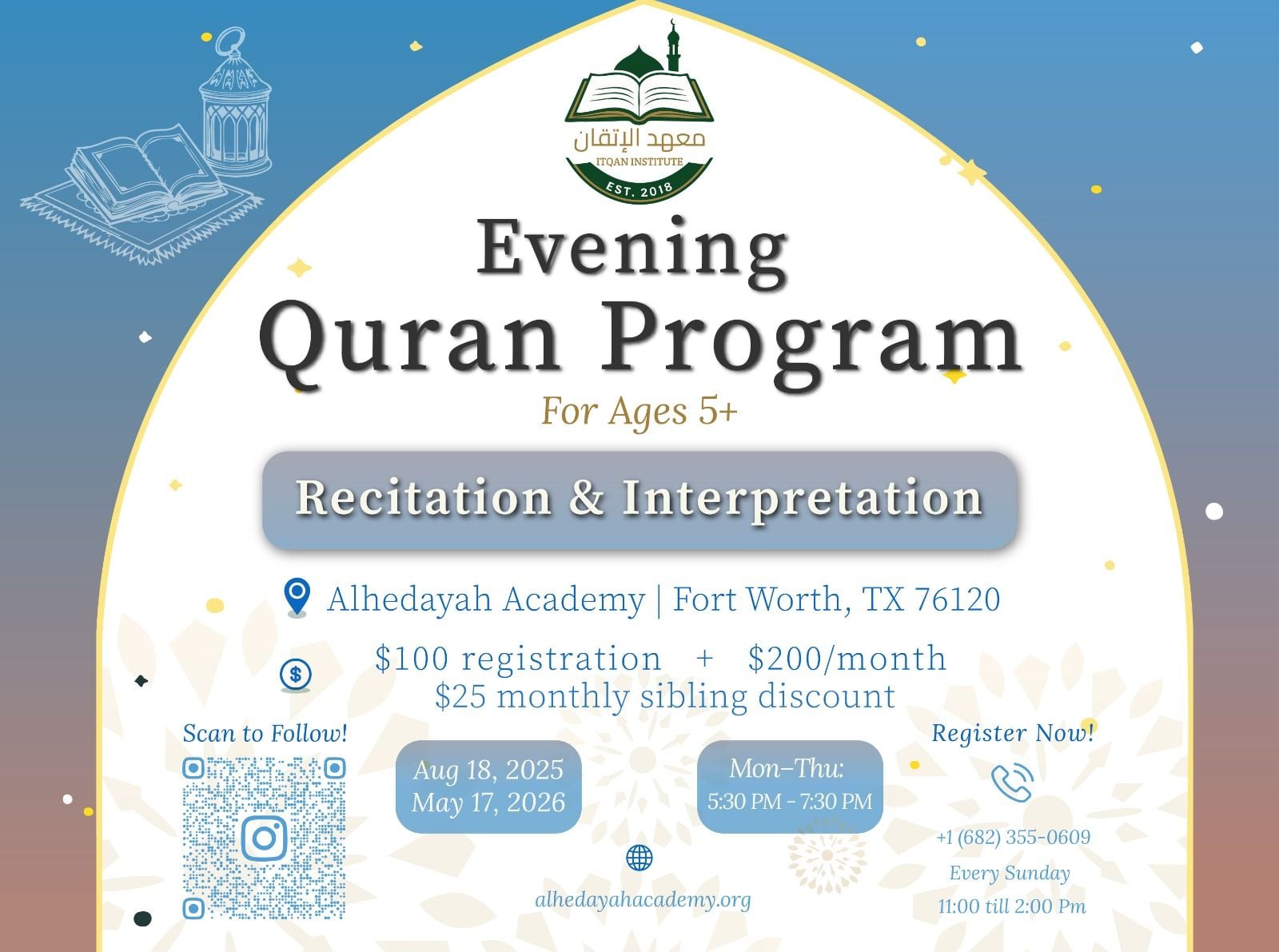 Location: Alhedayah Academy, Fort Worth, TX 76120.
