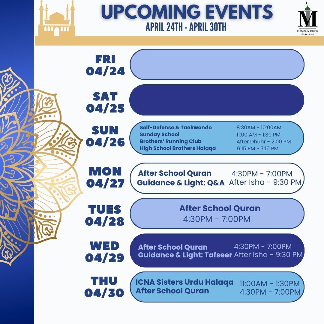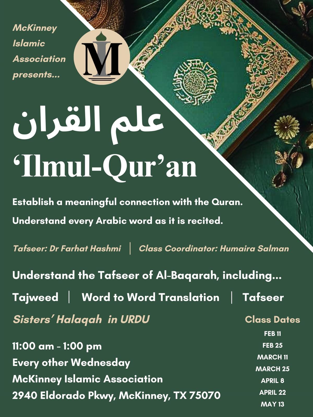 Sisters' halaqah in Urdu, every other Wednesday. Flyer lists upcoming dates through May 13.