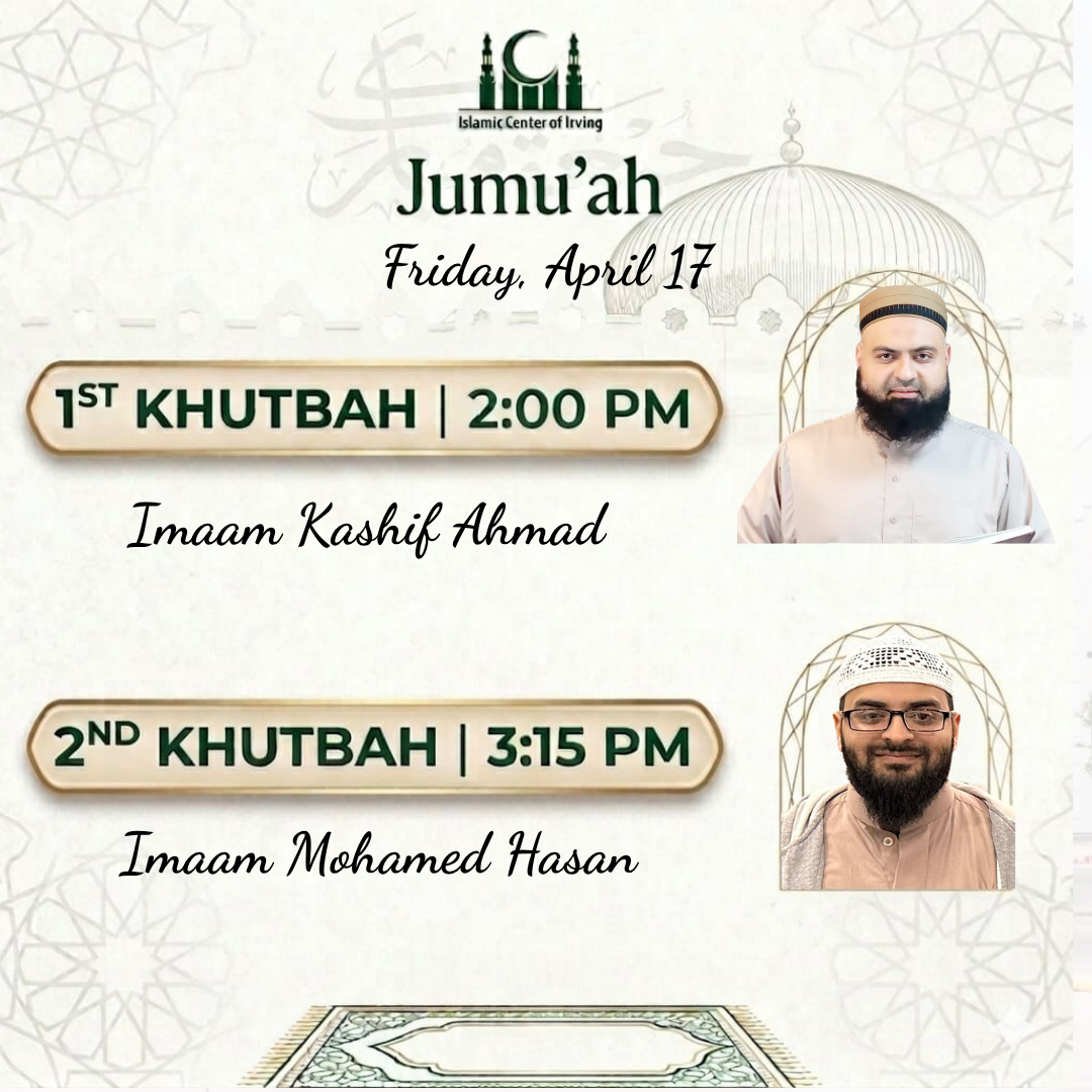 Khateeb: Imam Kashif Ahmad.