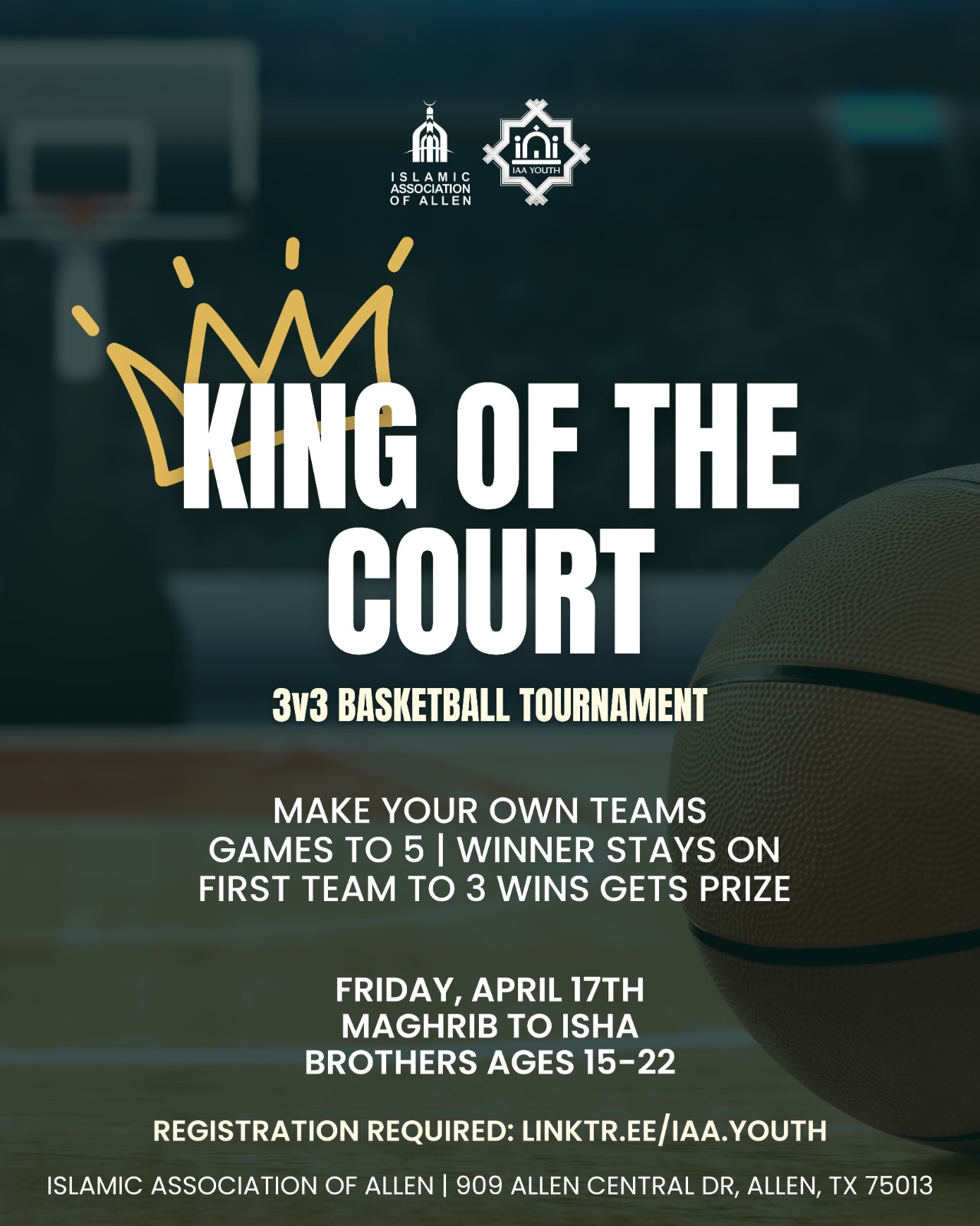 King of the Court: 3v3 basketball tournament.