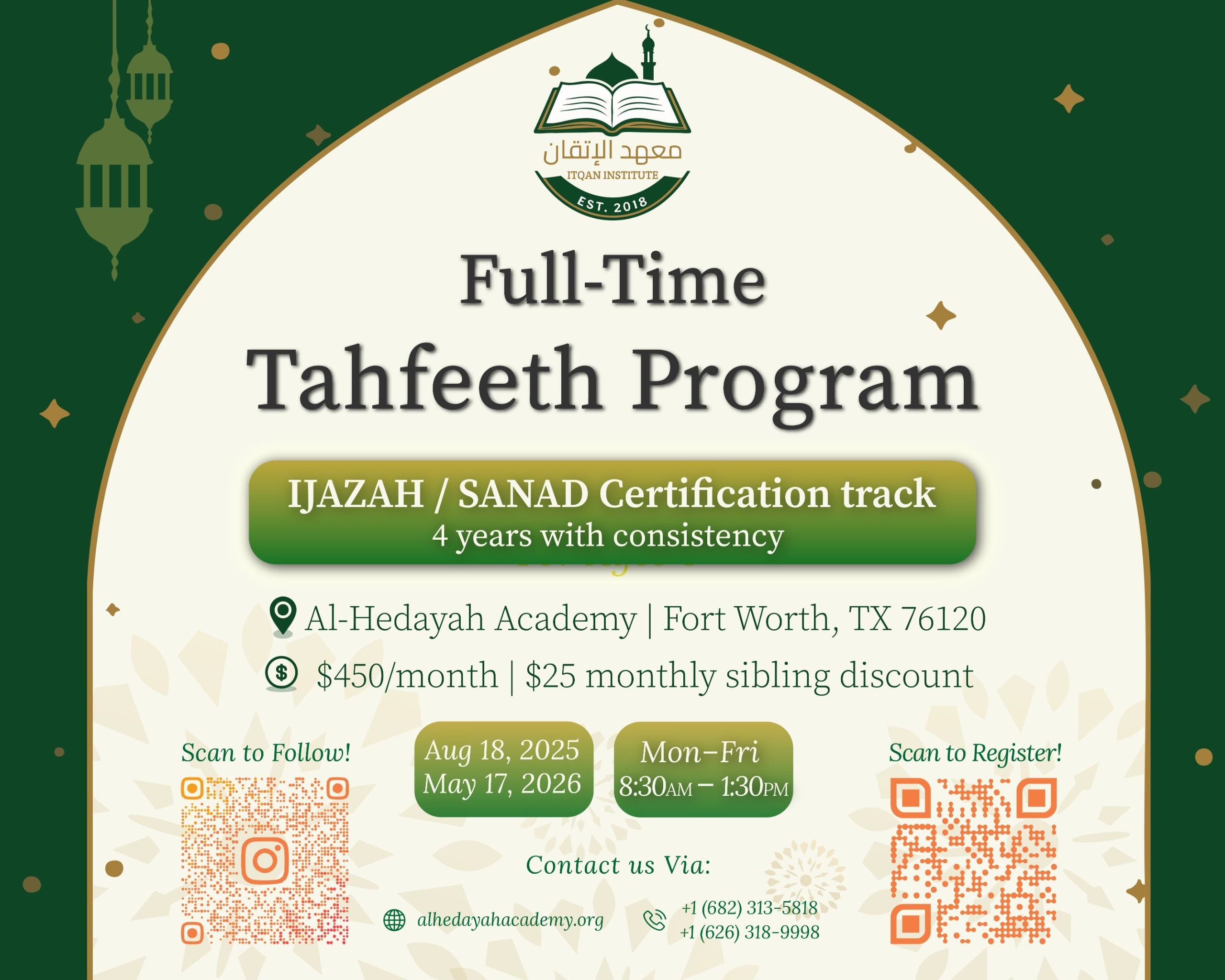 Location: Alhedayah Academy, Fort Worth, TX 76120.