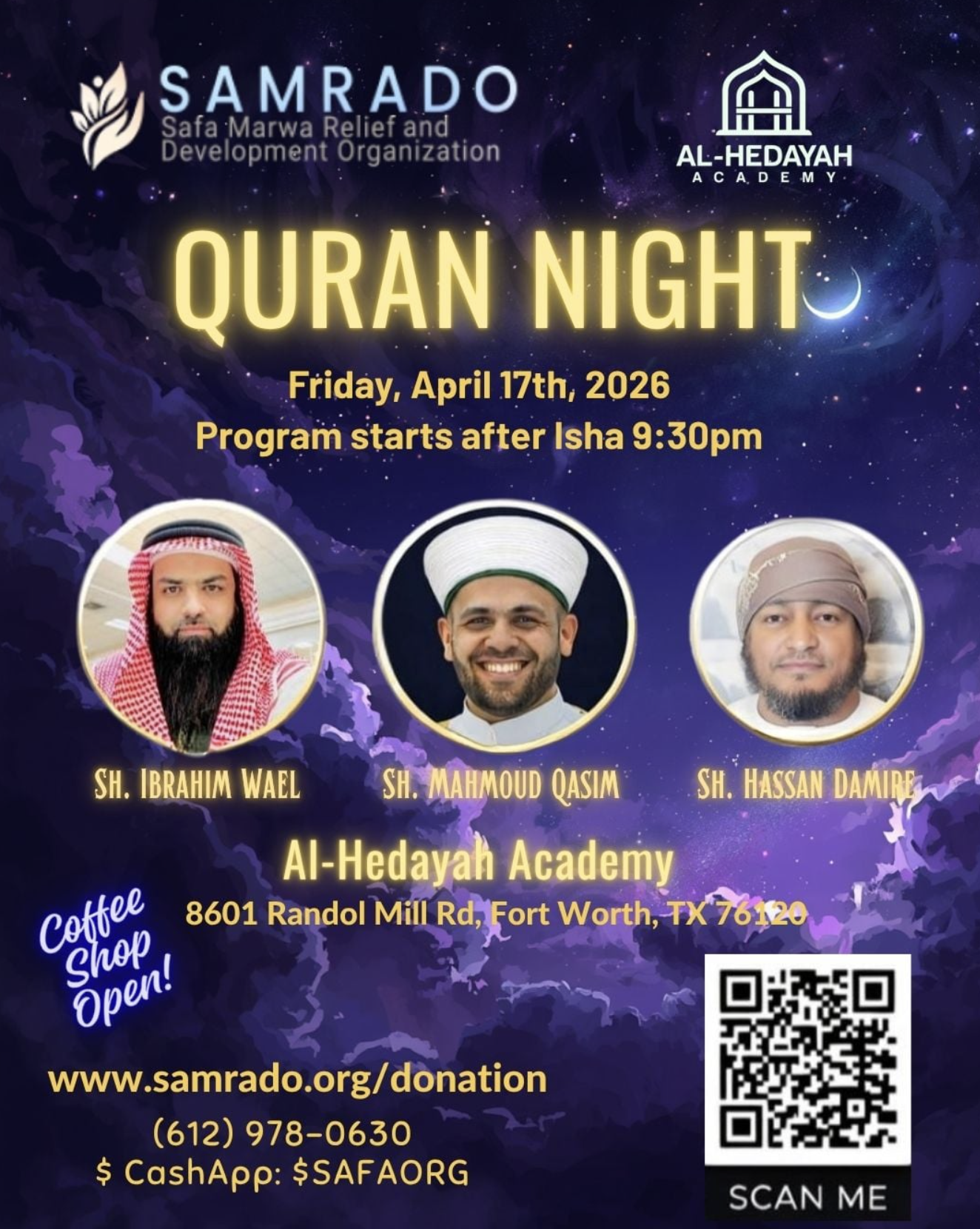 Location: Masjid Al-Hedayah (Al-Hedayah Academy), 8601 Randol Mill Rd, Fort Worth, TX 76120.